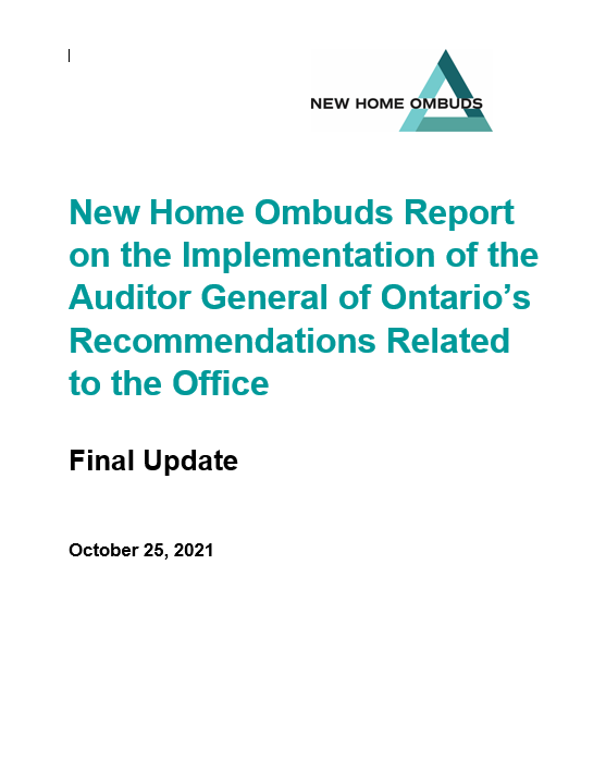 Telephone: 416-229-3828 Toll Free: 1-877-880-3828 Fax: 416-229-3849 Email: ombuds@newhomeombuds.ca